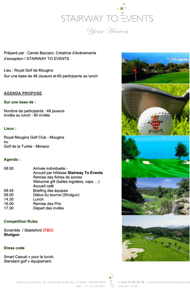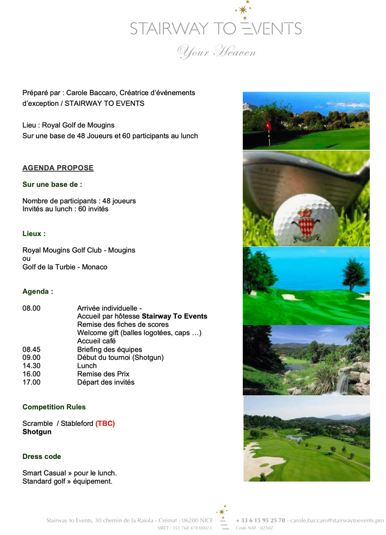 Nous travaillons avec des golf de premier plan de Monaco à la Région du Var afin de vous garantir des parcours de golf de qualité et des installations modernes pour répondre aux besoins de chaque événement.